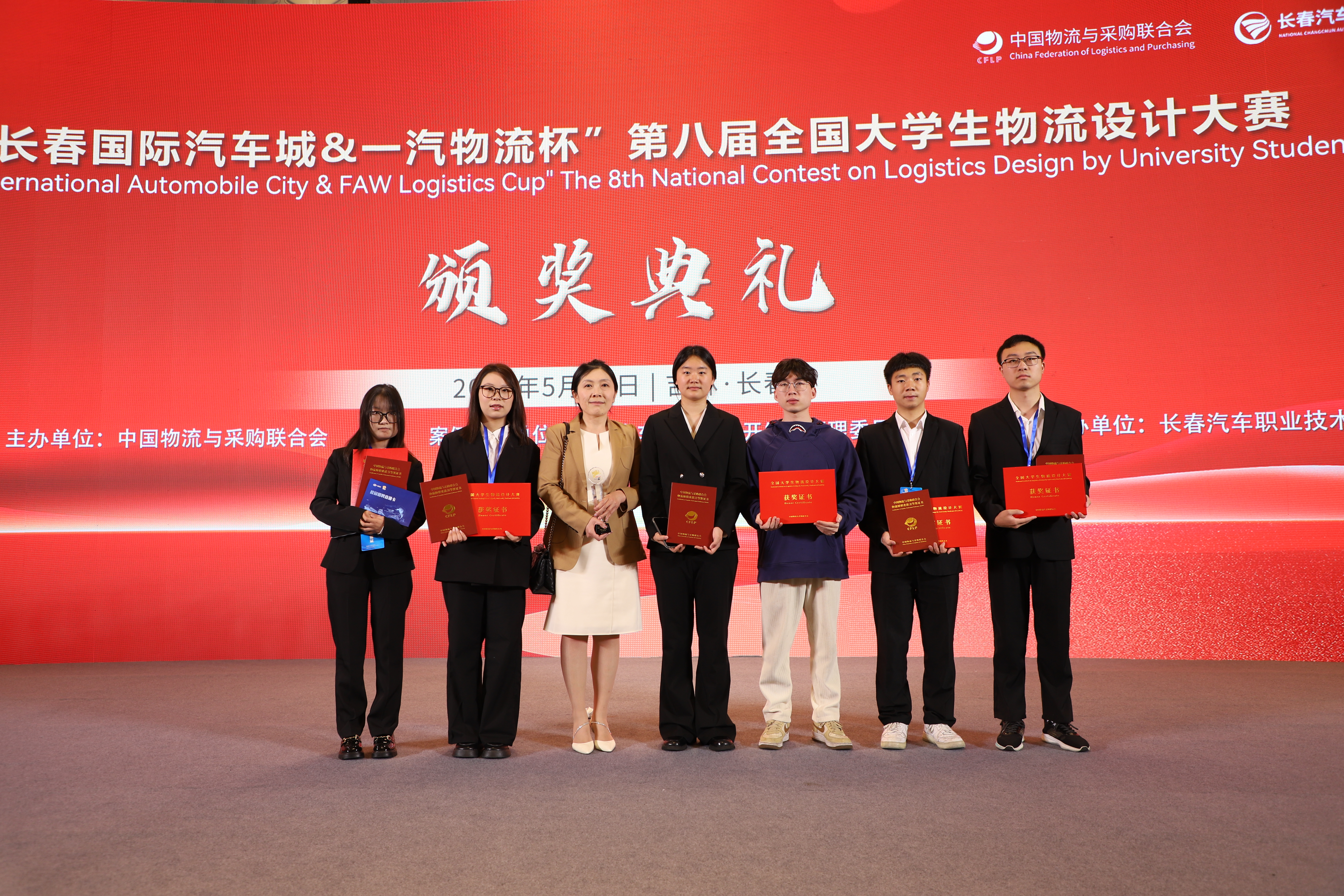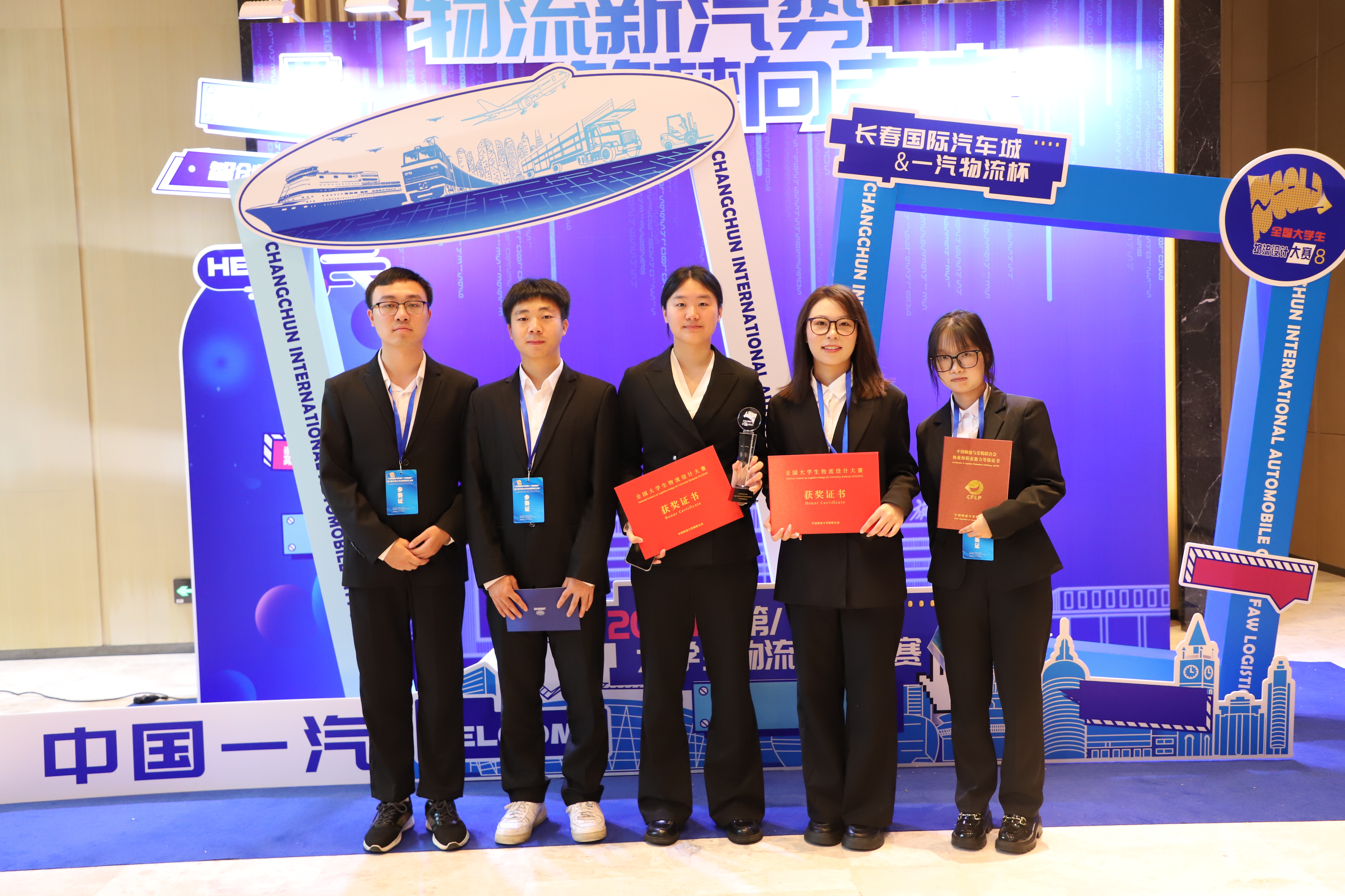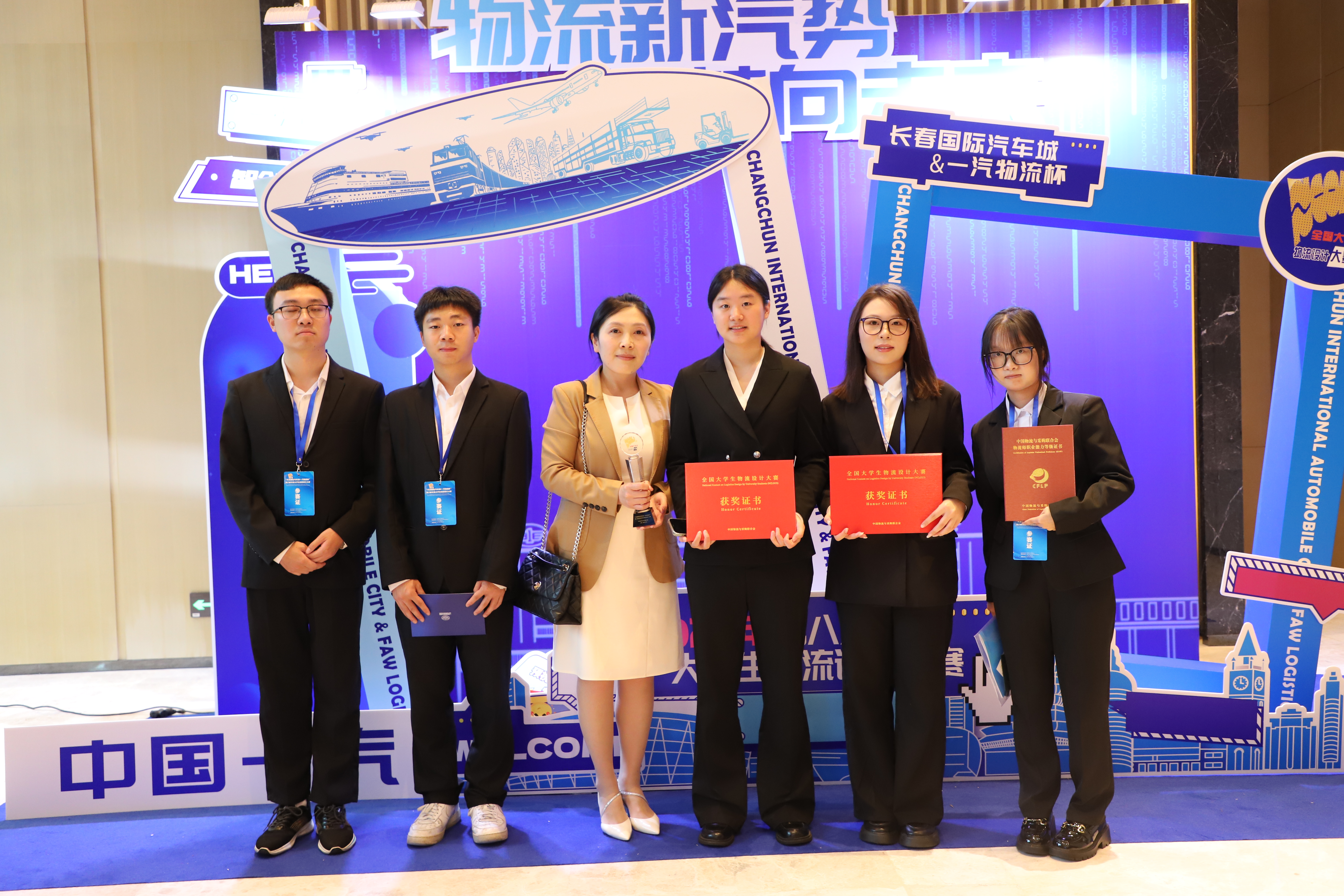 近日“长春国际汽车城&一汽物流杯”第八届全国大学生物流设计大赛决赛在长春举行。本次大赛历经7个月,共有699支代表队参赛,参与师生近5万人,经过初赛、复赛、决赛,决出一等奖18项、二等奖33项、三等奖39项,最佳组织奖9项。我校管理学院物流工程专业宁芝、崔安琪、万晓燕、张世秋、胡平五名同学组成的“伟德国际1949深藏blue队”在段华薇教授和谢寒副教授精心指导下,以作品《数智一汽,物网链通——整车物流全流程优化方案》从全国各高校699支参赛队伍中脱颖而出,成功斩获全国一等奖,参赛队员均获得“校园招聘直通卡”和“物流师”资格证。