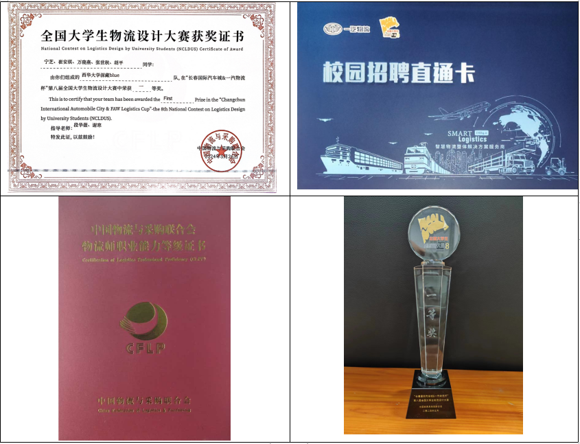 为了在比赛中取得好成绩,我校学子从2023年11月到2024年5月历经校赛、初赛、复赛、决赛,最终从699支队伍中脱颖而出,团队成员和指导老师付出了极大的心血。校赛开始后,在第七届全国大学生物流设计大赛中取得优胜奖的队伍“伟德国际1949JIT战队”团队成员的指导下,管理学院组织了由物流工程专业大三和大二同学组成的“伟德国际1949深藏blue队”参加初赛。初赛出线后,段华薇老师和谢寒老师帮助团队精心筛选分析案例,拟定方案大纲,在寒假期间召开多次会议讨论,完成初赛方案并顺利进入复赛。今年3月,段华薇老师带队到长春进行了为期3天的实地调研。此后,两位指导老师在深入了解企业实际需求情况下,结合企业实际对方案进行多轮线上线下指导讨论,敦促团队完善方案,并顺利进入决赛。决赛阶段,两位指导老师对方案进行了线上线下指导讨论,并邀请行业专家对方案提出了修改意见,组织多次答辩演练。比赛期间,邀请物流专业朱娟秀、刘晓晗、谭宇阳老师,以及物流工程与管理研究生焦中华等同学参与方案的指导讨论。最终,在5月24日的现场答辩中,我校学子与众多国内知名高校同台竞技,凭借稳定发挥出色完成方案汇报,并斩获全国一等奖。