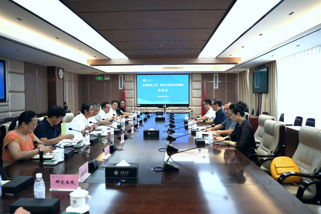 省教育厅高等教育处处长谢亮冯、学生工作处处长李浩、科技与研究生教育处处长贺羽;我校党政办、学工部、发规处、教务处、科技处、招就处、研究生院等相关部门负责人参加了此次调研活动。