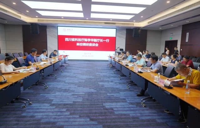 余孝其对陈学华一行来校指导表示欢迎,并代表学校感谢科技厅一直以来对我校人才培养、科学研究、实验建设方面的关心和支持,学校一定努力在高质量团队建设、高级别项目、代表性成果方面持续发力,继续为四川经济社会发展和科技创新体系建设贡献更多的智慧和力量。