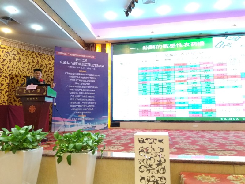 食品与生物工程学院院长陈祥贵教授作为特邀嘉宾作了题为“酶抑制法检测食品农药残留的研究”的大会报告。报告在分析国内外酶抑制法研究的基础上,从酯酶的敏感性农药谱、芸豆酯酶的农药敏感性研究、氧化前处理提高检测灵敏度等方面介绍了团队近年来开展的相关研究工作和取得的进展。