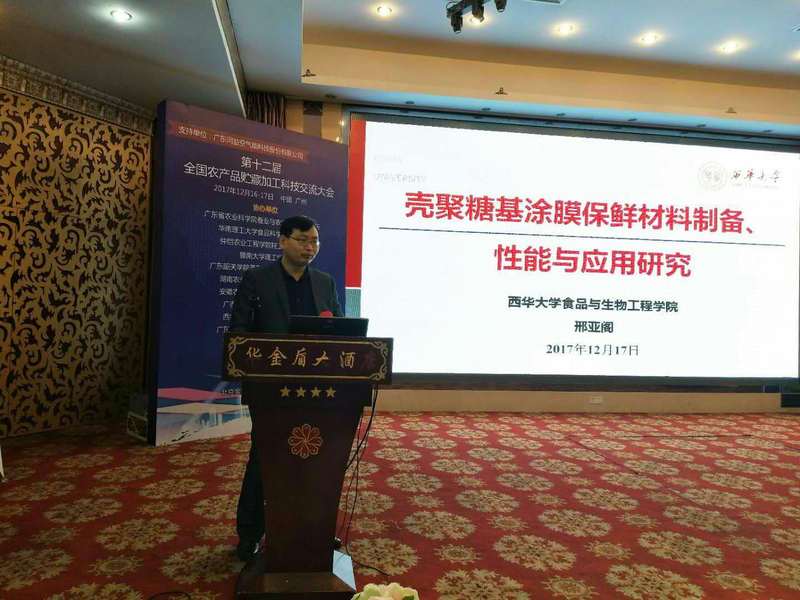 食品与生物工程学院教师邢亚阁副教授作了题为“壳聚糖基涂膜保鲜材料制备、性能与应用研究”的报告。报告从壳聚糖的来源、结构和性入手,重点介绍了果蔬壳聚糖基涂膜保鲜材料的制备方法、性能、抗菌机理和应用效果。