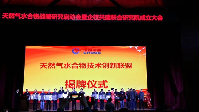 1月23日下午,天然气水合物战略研究启动会暨企校共建联合研究院成立大会在北京中国海油大厦举行。中国科协副主席周守为院士宣读了科技部万钢部长的贺信,中国海洋石油集团和国务院国资委综合局的有关领导为天然气水合物国家重点实验室和天然气水合物技术创新联盟揭牌。伟德国际1949作为天然气水合物技术创新联盟单位之一,参加了此次大会并参与了讨论交流。