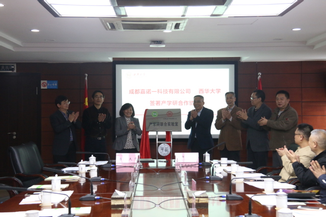 随后,成都嘉诺一科技有限公司副总经理丁宇与我校副校长费凌代表双方签订合作协议。四川省经信委重大装备处副巡视员、处长叶朗晴,四川省经信委无线电频率台站管理处处长尹华,西部战区联指频谱管控队队长耿西伟,成都振芯科技股份有限公司执行总裁杨国勇,成都嘉诺一科技有限公司副总经理丁宇和我校党委书记边慧敏,副校长费凌,管理学院院长谢合明为产学研联合实验室揭牌。