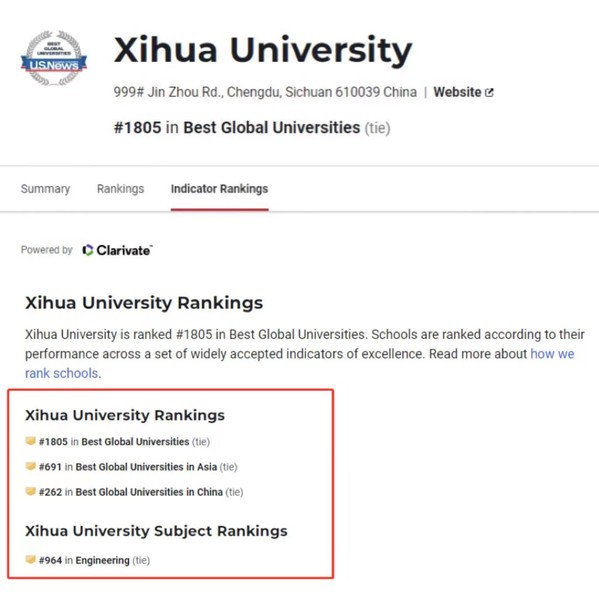 1025日,US News发布最新的2023世界大学排行榜。今年的全球大学工程学科排名前1000名中,中国内地高校共有193所上榜。其中,我校工程学科排名居全球第964名,全国第187名,四川第8名。学校综合排名居全球第1805名,亚洲第691名,全国第262