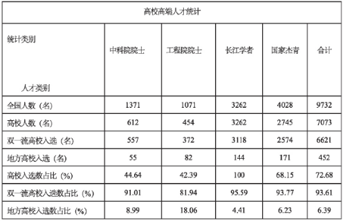 1  2017年全国高校高端人才情况统计