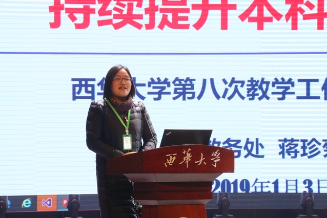 教务处处长蒋珍菊作了题为“转变观念 推陈出新 持续提升本科教学质量”的主题报告。报告从本科教学工作审核评估和工程教育专业认证专家反馈意见谈起,提出要适应新的教育形式的变化和要求,转变观念,推陈出新;要科学设置人才培养方案,通过“三减”(减学分、减课程、减学时),“三改”(改革教学方法、考核方式、评价体系)和“三建设”(专业建设、课程建设、管理建设),转变教学观念,持续提升本科教学质量;通过推进一流本科教育建设,让学生刻苦读书学习,让教师潜心教书育人。