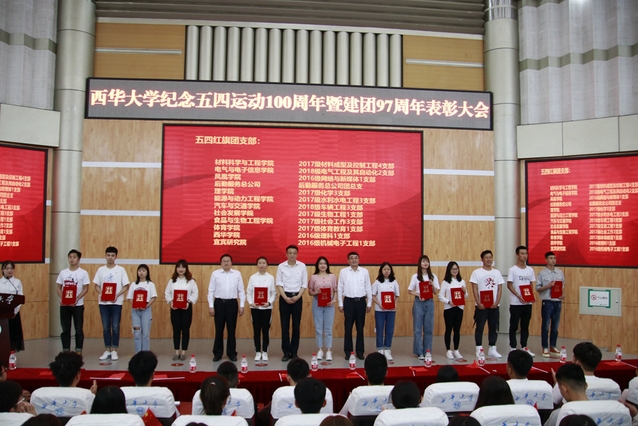 为继承和弘扬五四精神,激励各级团组织和广大青年不断奋进,4月30日下午,学校在四教报告厅举行纪念五四运动100周年暨建团97周年表彰大会。全体校领导,相关职能部门负责人,各学院分管学生工作书记(副书记)、学工办主任及团委工作负责人,受表彰先进集体和优秀个人代表参加了会议。
